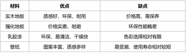 下面为您用表格对比几种常见的装修材料: